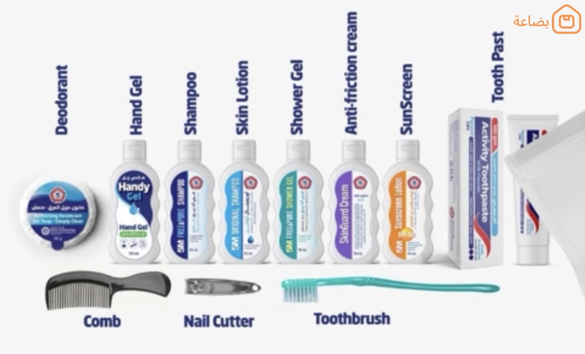 متوفر كيت الحج والعمره كميات واقي شمس كريم تسلخات شاور جيل صابونه شامبو شنطه قصافه معجون اسنان