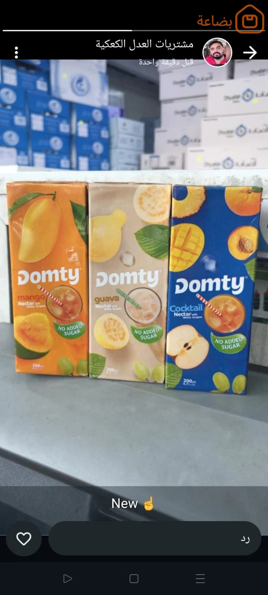 Al Badr International Trading Company The exclusive agent for Domty juices in the Kingdom of Saudi Arabia Natural nectar without sugar, sweetened with white grapes, excellent quality, as witnessed by witnesses Carton: 27 pieces Size 200 ml Competitive prices To communicate #13543